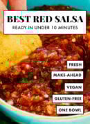 This incredible red salsa recipe offers fresh, authentic Mexican salsa flavor. It's so easy to make, too—you'll need only 6 ingredients and 10 minutes. This is the best salsa recipe!