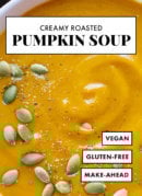 This pumpkin soup recipe includes instructions on how to roast fresh pumpkin, for maximum pumpkin flavor. Canned pumpkin purée also works well, if you’re in a time crunch. See the recipe notes for details!