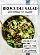 This broccoli salad recipe is the best! Itโs healthy, too, thanks to the delicious honey-mustard vinaigrette (no mayo). This broccoli salad packs great for lunch and potlucks. Recipe yields 6 side servings.