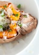 A simple, savory baked sweet potato. This sweet potato would be fantastic as a side dish or accompanied by a giant green salad.