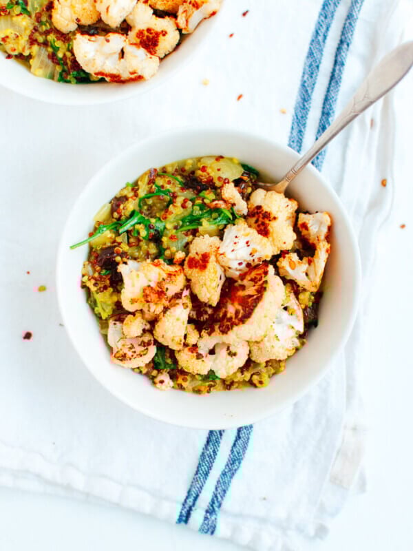 Curried Coconut Quinoa and Greens with Roasted Cauliflower