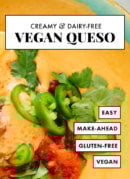The best vegan queso recipe—it’s incredibly creamy, yet made without any dairy or processed ingredients! This healthy dairy-free nacho cheese will satisfy the diehard cheese fans in your life, too. Recipe yields about 3 ½ cups queso.