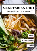 This vegetarian pho (Vietnamese noodle soup) is full of flavor, thanks to spices, herbs and sautéed shiitake mushrooms! It’s easy and fun to make, too.